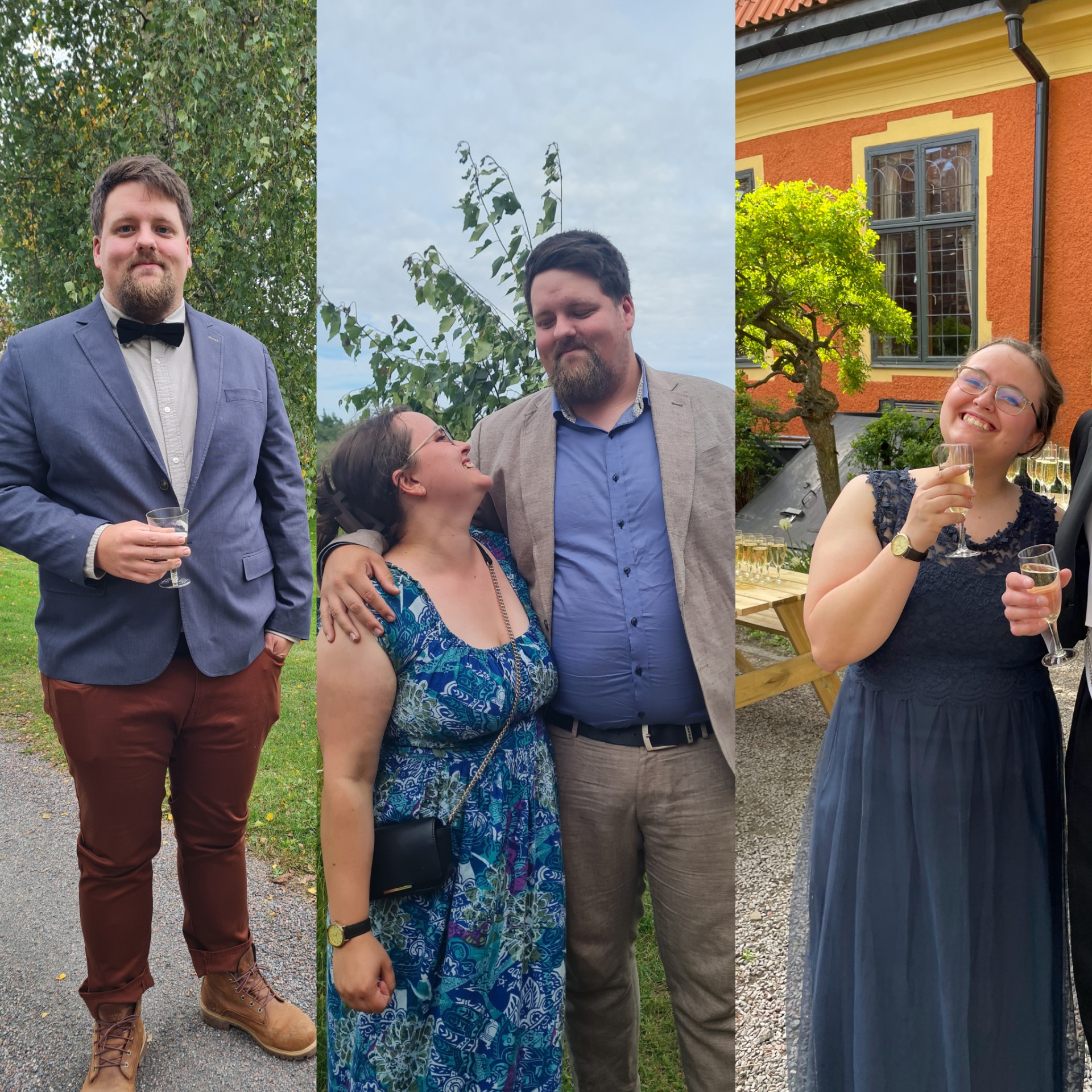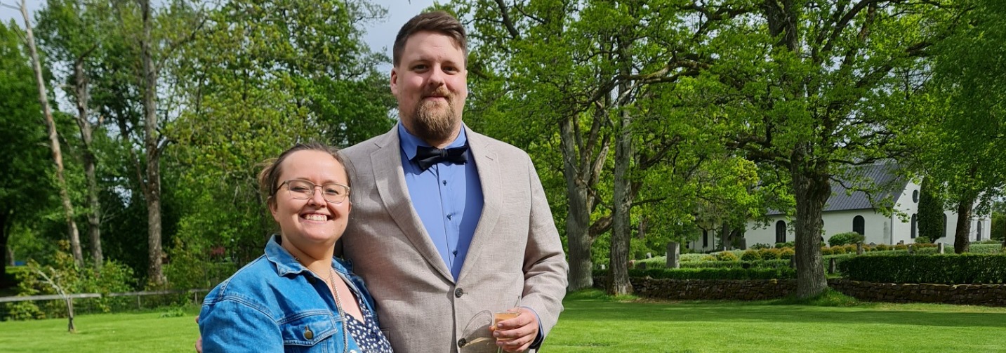 "Kavaj/Udda kavaj" betyder i vårt fall att vi önskar att våra gäster klär upp sig så som man klär sig när det vankas kalas. Det är inte varje dag som vi två gifter oss med varandra! För oss är det viktigt att alla känner sig fina och bekväma, därför vill vi erbjuda mer flexibilitet och tycker att det är bra att gästerna har möjlighet att välja mellan klänning, byxdress, hel kostym eller udda kavaj – vilket innebär att kavaj och byxor inte behöver matcha.